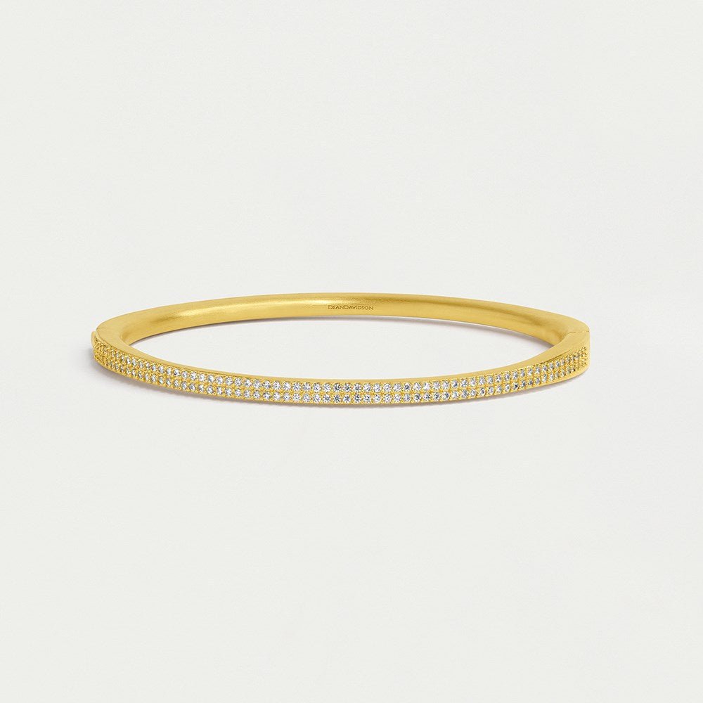 Two rows of fine pavé shine atop the Signature Pavé Hinge Bangle, which features an easy-to-wear oval silhouette and a lever hinge closure that locks into place.