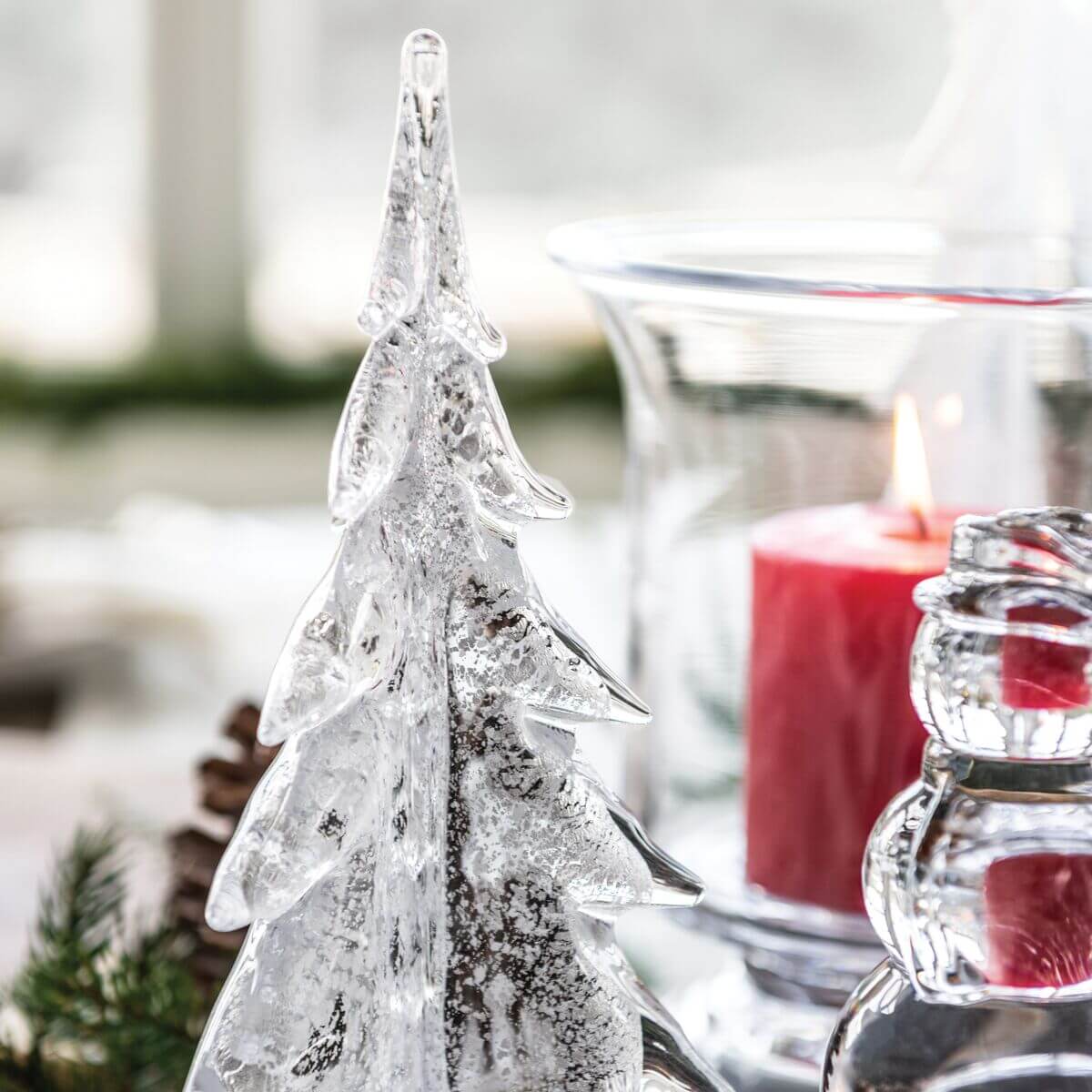 The Vermont Silver Leaf Evergreen brings new dimension to our iconic collection of trees. Handcrafted by infusing our molten glass with pure silver, the trees create the quiet beauty of winter or the brilliance of the holiday season. Start your collection or build on an existing one. Place on an LED light for greater brilliance. The SILVER LEAF EVERGREEN is available in several tree heights.