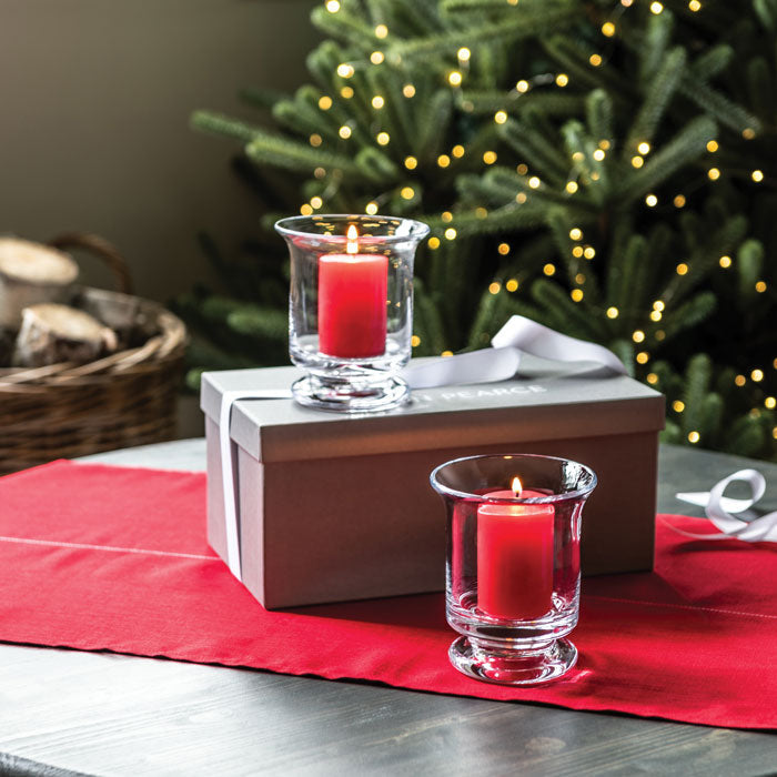 A fresh take on tradition. These broad-based hurricanes, with their short stems and flared rims, are inspired by Paul Revere's iconic silver bowl. A perfect housewarming gift: this duo flanks a mantel or entryway with stately brilliance.