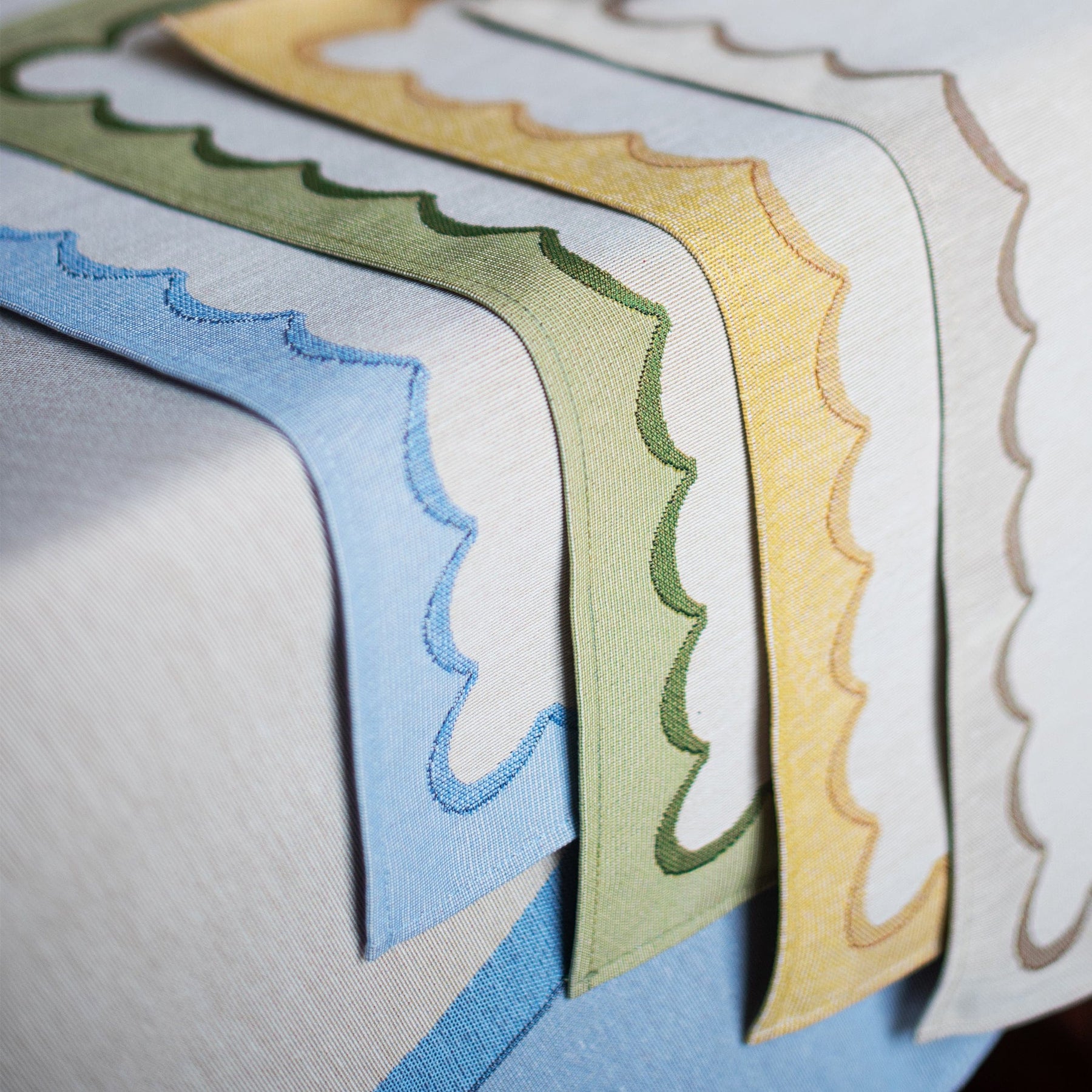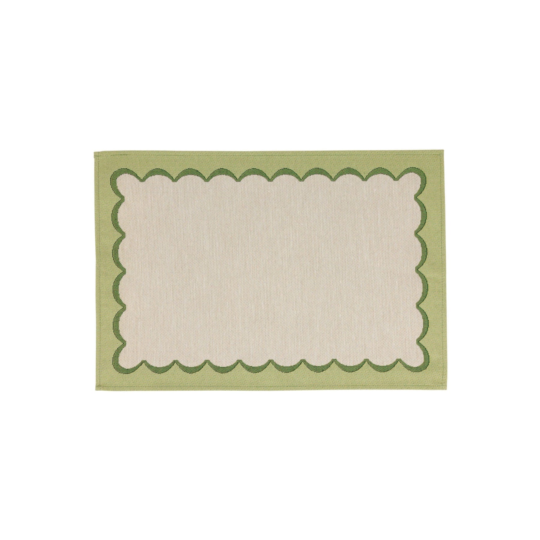 Create an inviting atmosphere with the Tavola Green Scalloped Placemats, featuring jacquard stitching and a fresh color palette.
