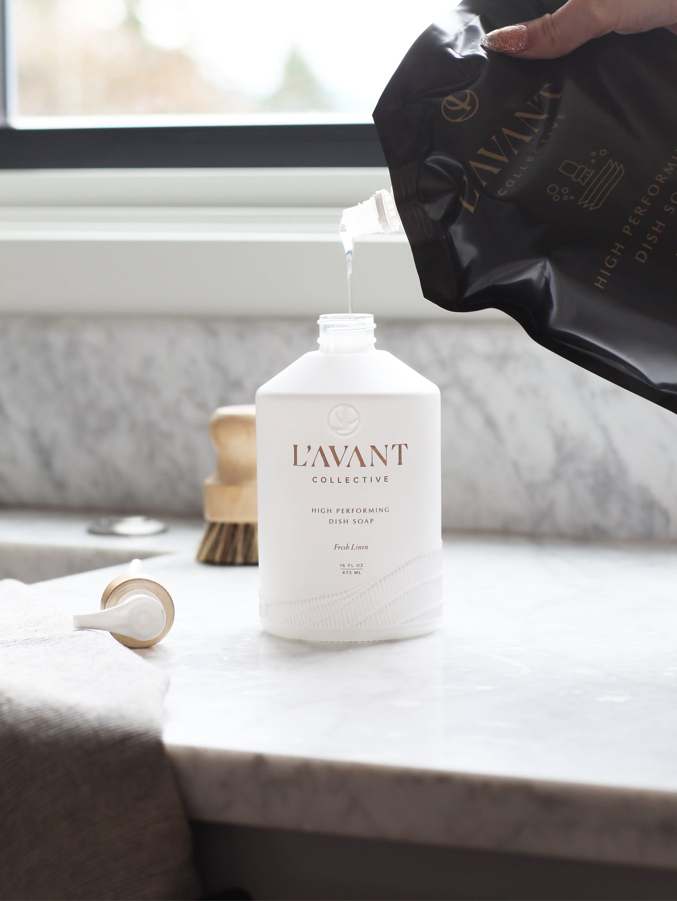 We made our glass bottles beautiful for a reason: not only to look stylish on your counter, but to be refilled for an elevated addition to your eco-luxe home. This dish soap refill is a luxurious, plant-based cleaning solution, offering concentrated power. Ideal for making even the toughest dishes sparkle, this powerful yet gentle formula helps you care for your home in an elegant, tasteful way.
