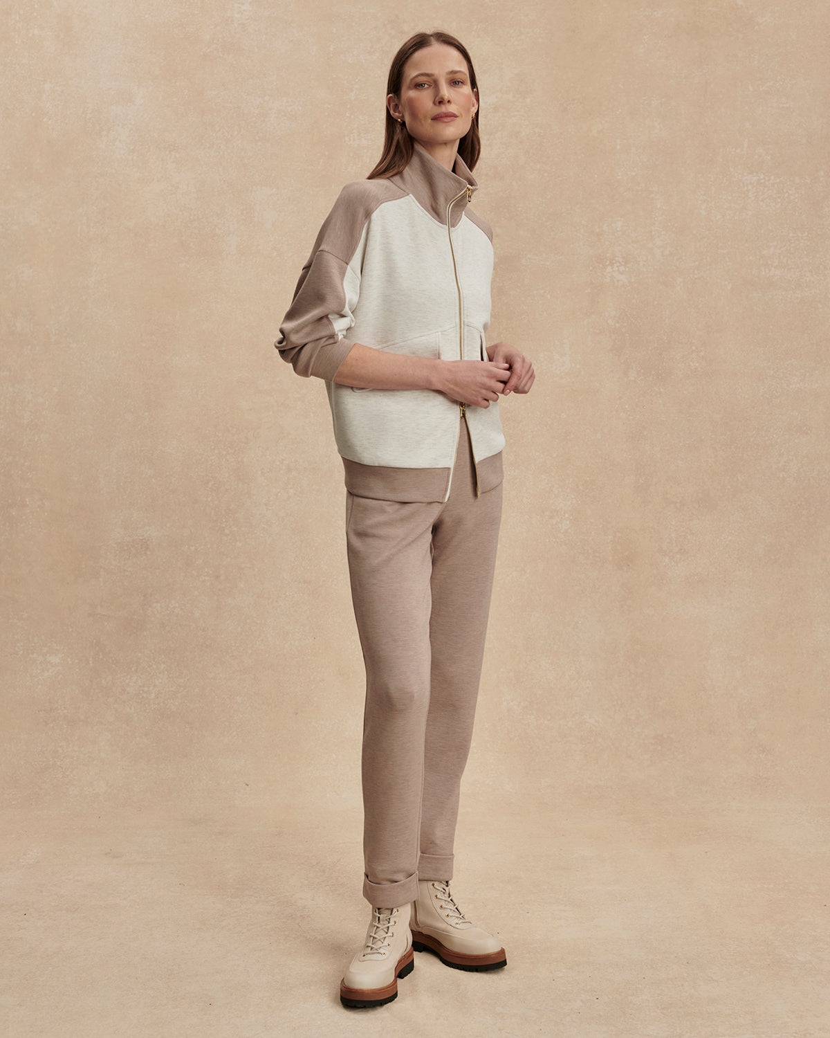 Garcia 2 Tone Zip Through Sweat (Ivory Marl / Taupe Marl)