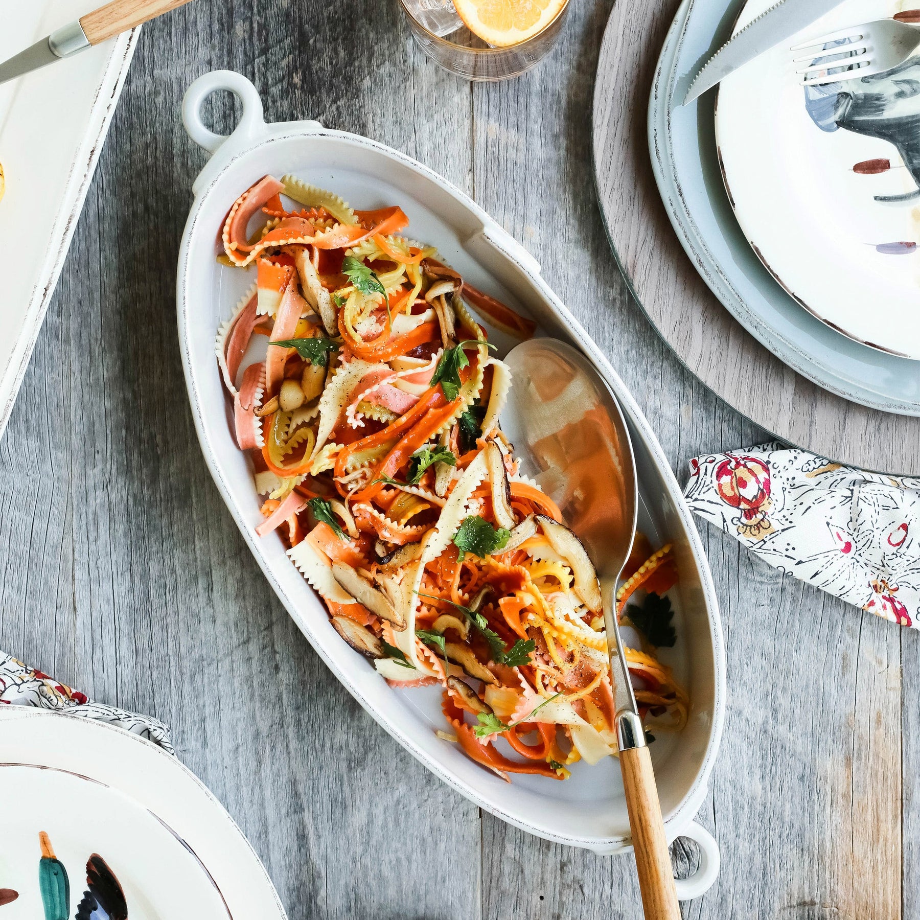 Beloved for its sophisticated simplicity, versatility, and durability, Lastra is our bestselling collection. The understated elegance, clean lines, and unique shape of the Lastra Handled Oval Baker make it a timeless baking and serving piece. Lastra’s design was inspired by the circular wooden slabs used for centuries to create the outer mold in cheesemaking throughout Italy. When fashioned together with twine, the hoop was left with a slight overlap to help maintain the shape of the cheese mold. Maestro molder Stefano Roselli incorporates the overlapping detail into the entire design, from its foot to its rim. A dark dusting on the edges of each piece suggests the ash that was used to preserve these cheeses and highlights each unique silhouette.