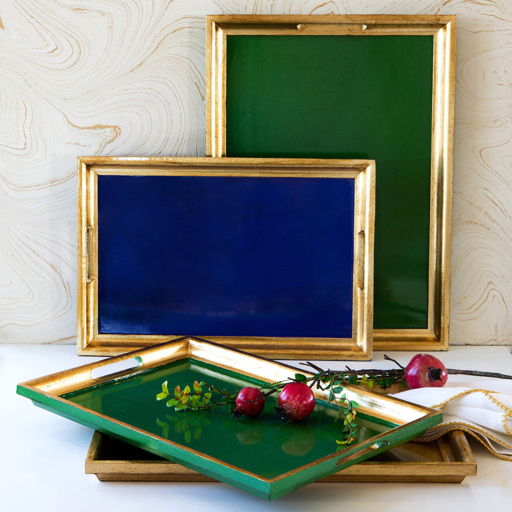 Florentine Wooden Accessories Green & Gold Medium Rectangular Tray