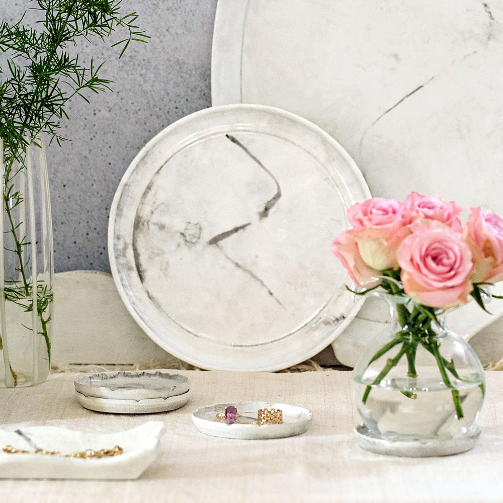 Traditional shapes, soft curves, artistic details, and radiant hues make the Florentine Wooden Accessories a timeless statement collection. Inspired by the artistry of the Renaissance, maestro artisans handcarve each Florentine Wooden Accessories Marble Small Round Tray, and it brings brings Italian panache to your home.
