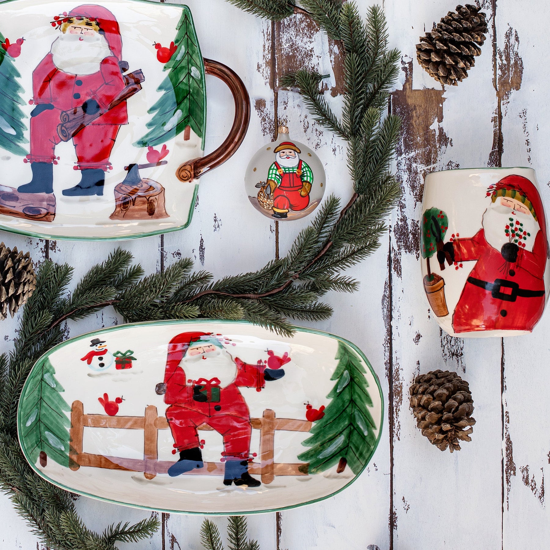 VIETRI’s signature holiday collection is created from maestro artisan Alessandro Taddei’s childhood memories of stories his mother used to read to him about Babbo Natale, Italy’s Santa Claus. Alessandro relays his favorite scenes from those stories through his whimsical designs on the Old St. Nick Small Vase.