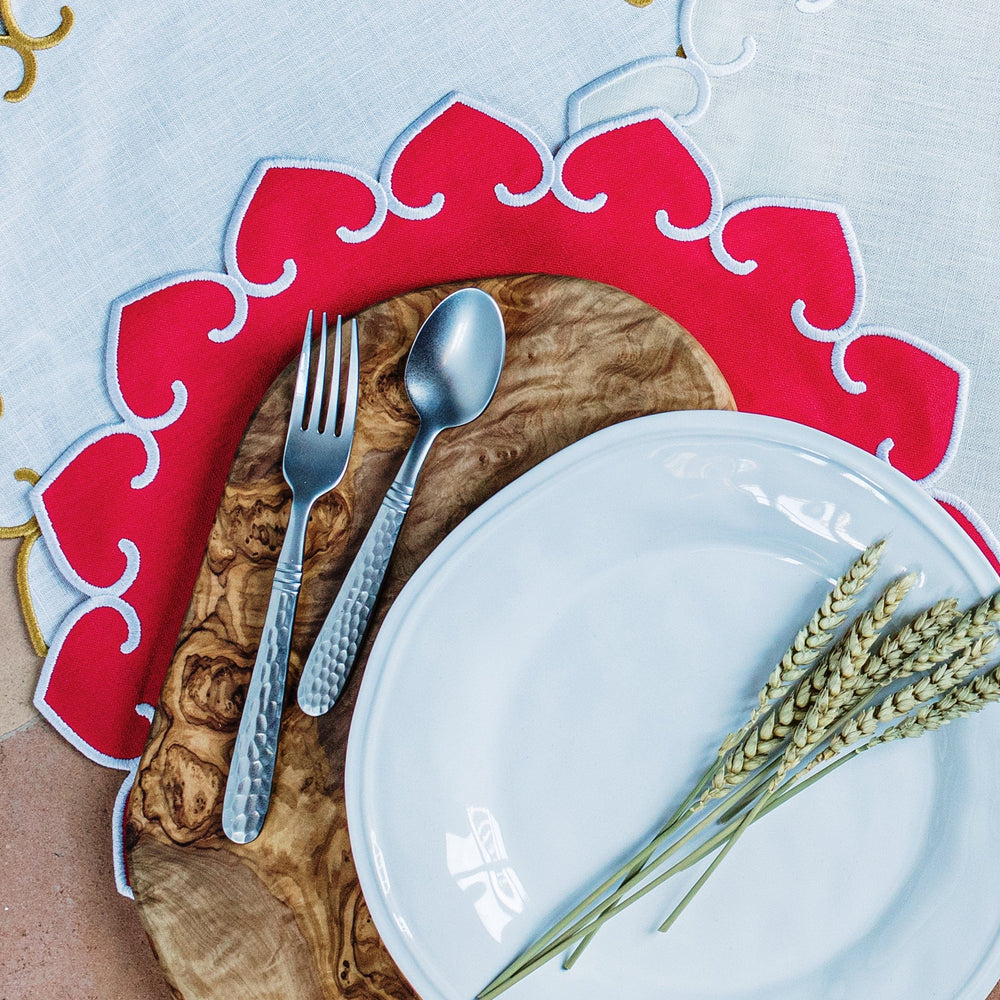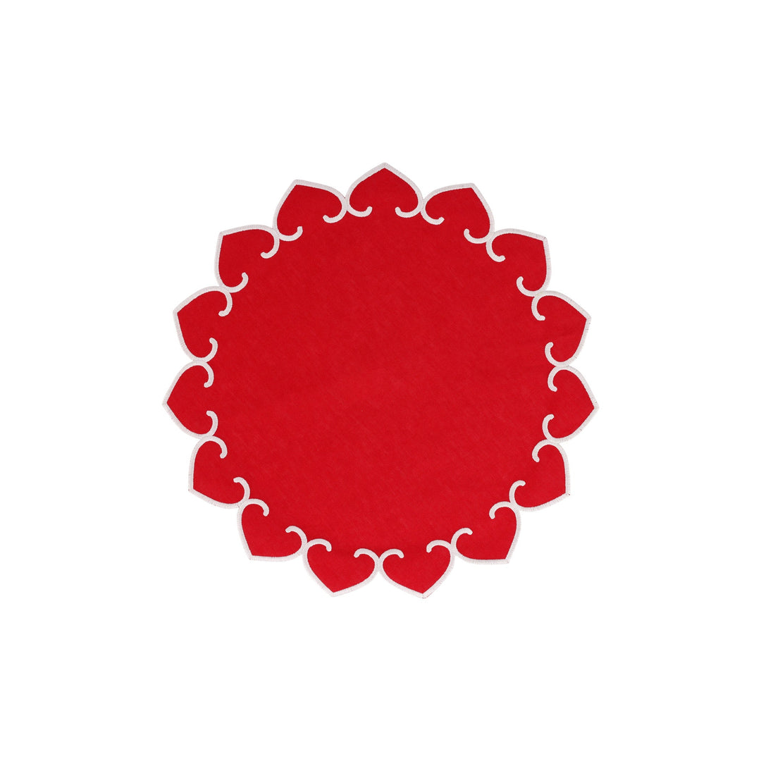 Tessuti Red Round Placemats with White Stitching - Set of 4