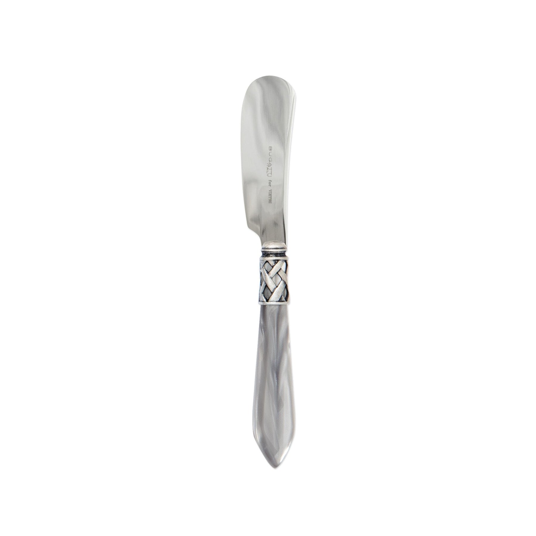 The Aladdin Antique Small Spreader features elegant pearlized handles with the strength of high-grade acrylic and 18/10 stainless steel. This piece is also available in our brilliant finish.