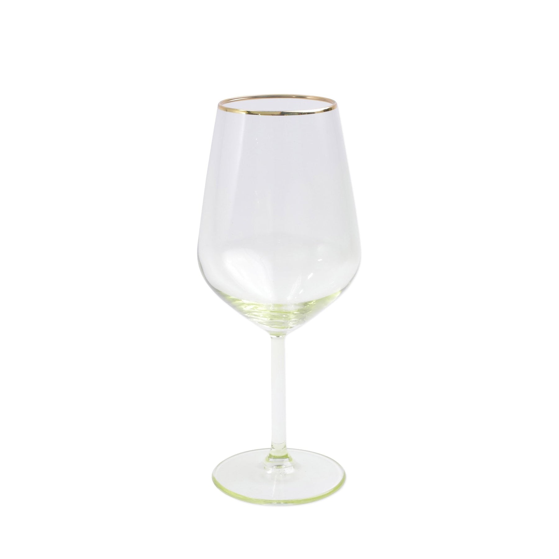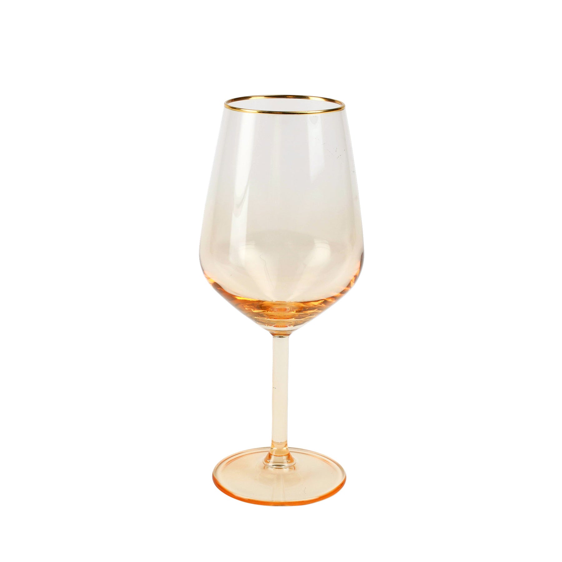 Add sparkle to any setting with a gilded gold rim and varied colored glass that refracts light on the Rainbow Wine Glass.