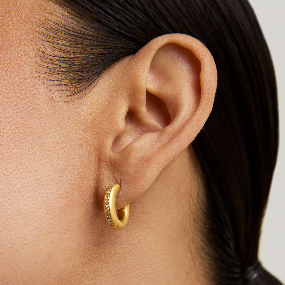 Meet the comfortable hinged huggies you'll wear non-stop—featuring hand-set pavé gemstones for a hint of flash as they catch the light. Stack them up or wear them solo; you can't go wrong in this timeless pair.