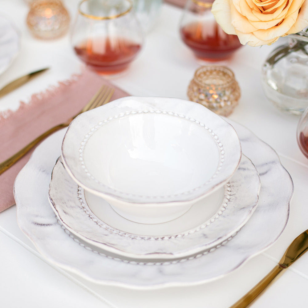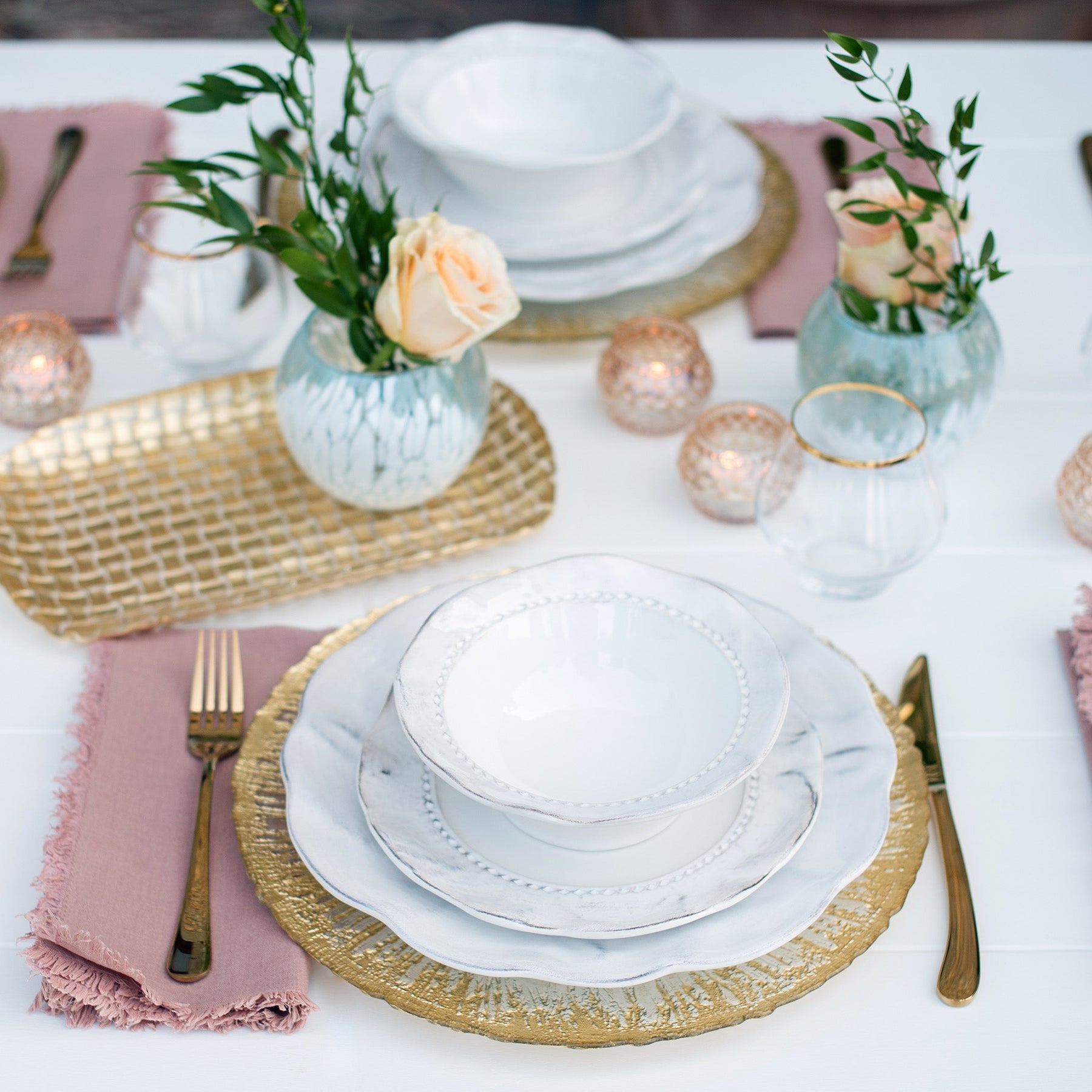 Both relaxed and refined, Giorno captures casually elegant Italian style. A wreath of precise etchings encircle each Giorno Salad Plate, and the nuanced glazing is done in a way that brings patina to each piece.