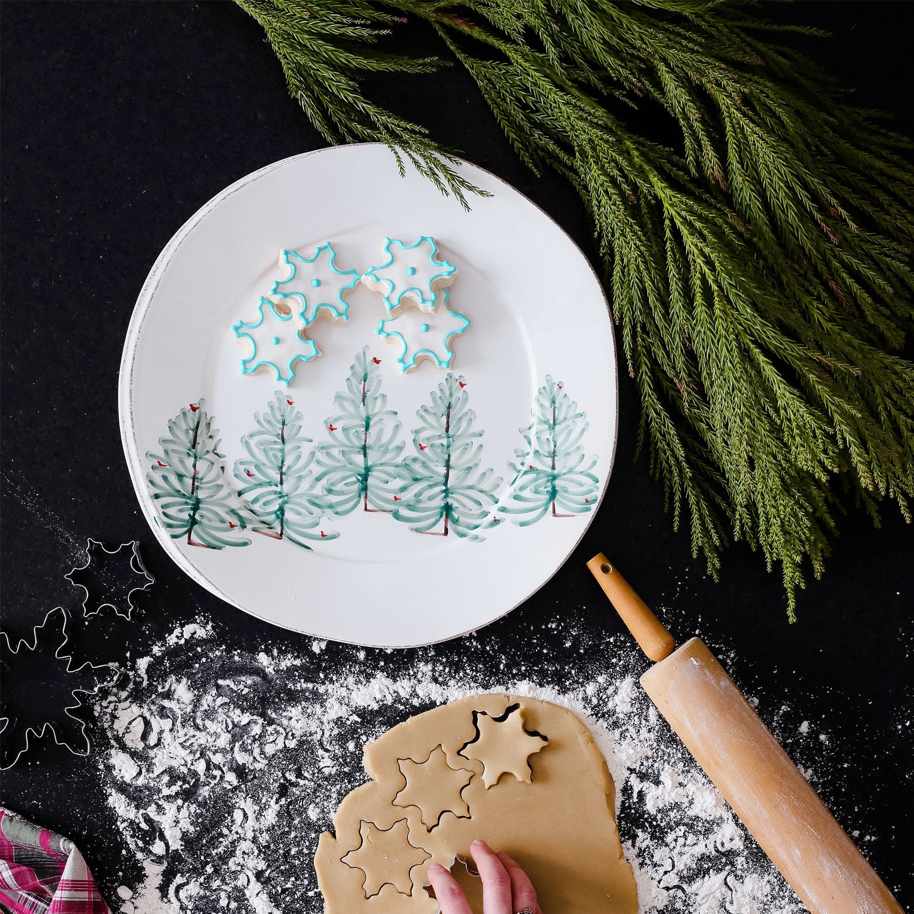 Delight in the magic of the holiday season with the Lastra Holiday Round Serving Platter. Whether you are hosting a winter brunch or a Christmas dinner, this ceramic plate is the perfect complement to your holiday décor. Handpainted on Italian stoneware in Tuscany.