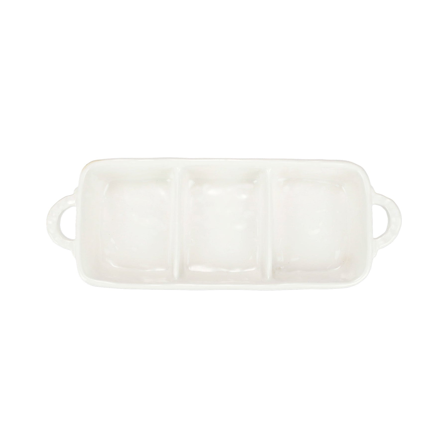 Characterized by handpressed edges, Pietra Serena pays tribute to the architectural details of Florence, Italy during the Renaissance. The Pietra Serena Three-Part Server features a handpressed design around its edges and is a simply beautiful entertaining piece.