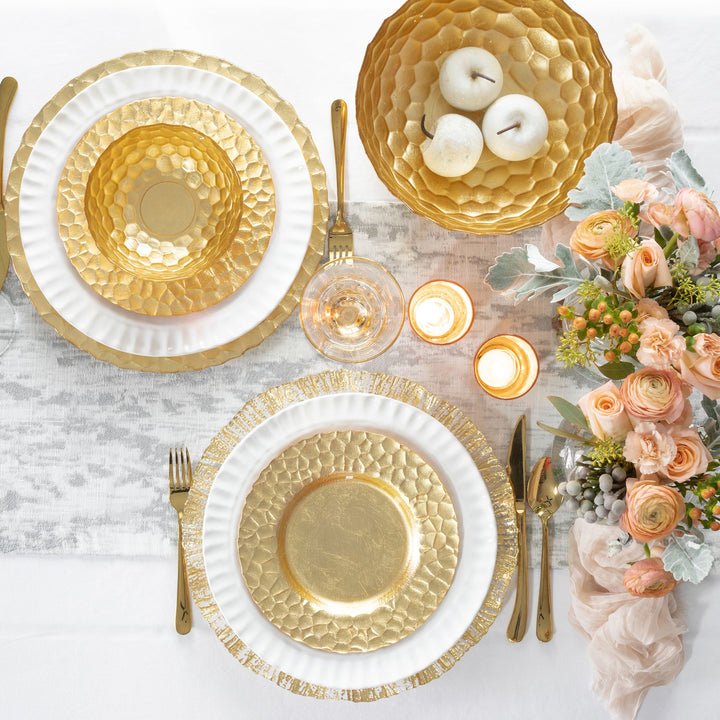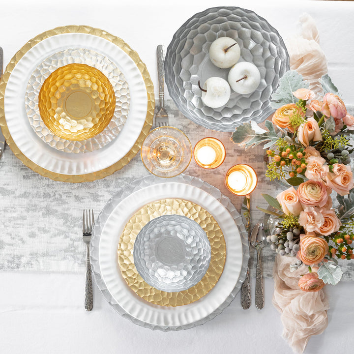 The Rufolo Glass Honeycomb Large Bowl brings luster to your table. The glass piece features an organic, striking honeycomb pattern, and the final result makes a glimmering statement.