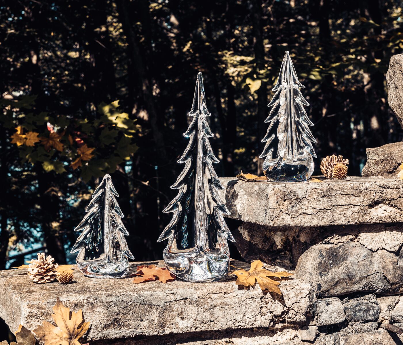 Our handmade glass trees are a signature of our brand and one of our most popular designs. Illuminated from below or left to shine on their own, each unique tree is inspired by the beauty of nature. A joy to give, collect and enjoy at the holidays – and all year round.The VERMONT EVERGREEN is available in several tree heights.