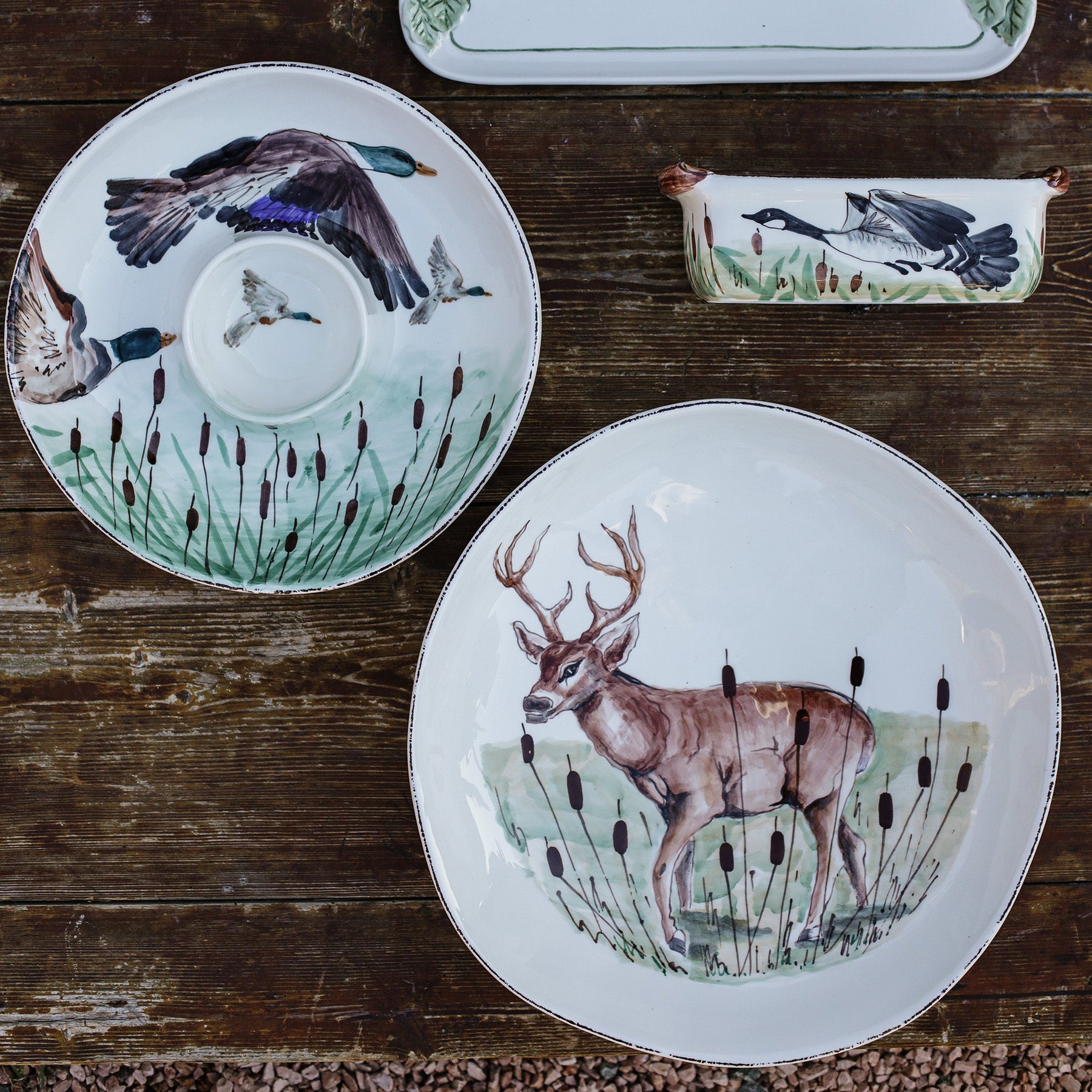Bring the grandeur of wildlife and the traditional Italian hunt to your home with this whimsical collection. Handpainted, the Wildlife Deer Large Bowl is both sophisticated and rustic.